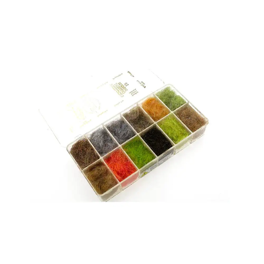 SLF Dubbing Dave Whitlock Dubbing Dispenser innehåller 12 olika färger dubbing med otroligt fina färger som passar perfekt till flugbindningen av realistiska insekter men även otroligt bra till streamers.